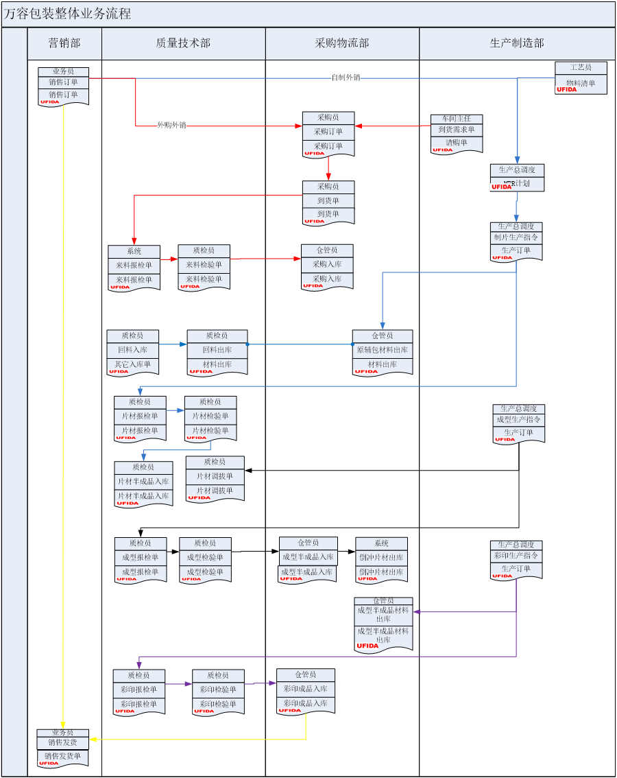 ④ 各業務部門主要業務流程形成圖案和文檔說明,提供ERP標準的操作方案