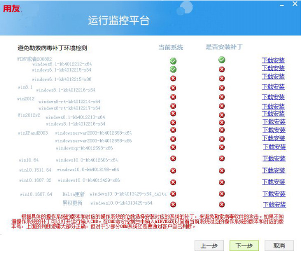 為了協助客戶預防和規避勒索病毒帶來的危害,U8產品研發部門快速開發了勒索病毒安全補丁檢查工具,通過工具,客戶可以了解自己服務器缺少哪些勒索病毒相關補丁,也可以在線下載安裝所需補丁,確保服務器安全。